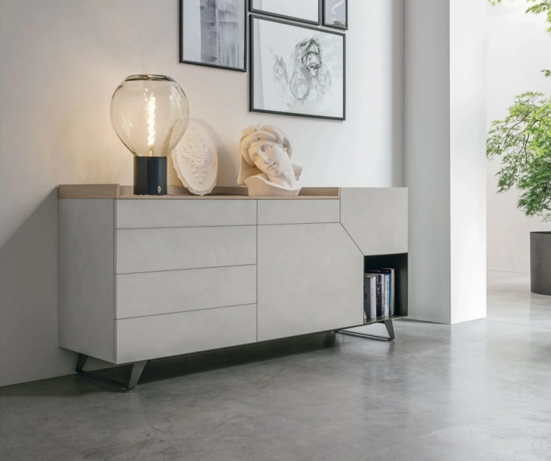Arreda un soggiorno dinamico e operativo con questa madia Remix X05 di Tomasella: scopri le più belle Madie in melaminico.