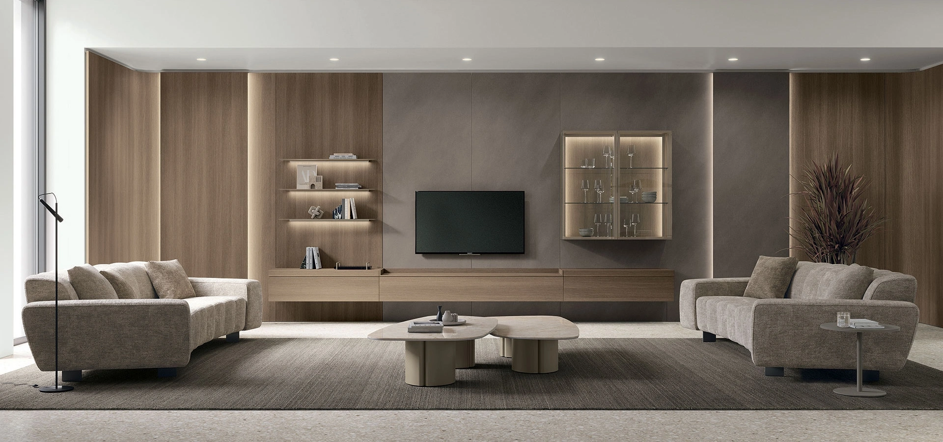 Pareti attrezzate e mobili giorno Tomasella: clicca e scopri il modello Atlante UNIT AT144 e potrai valorizzare stanze moderne di ogni genere.