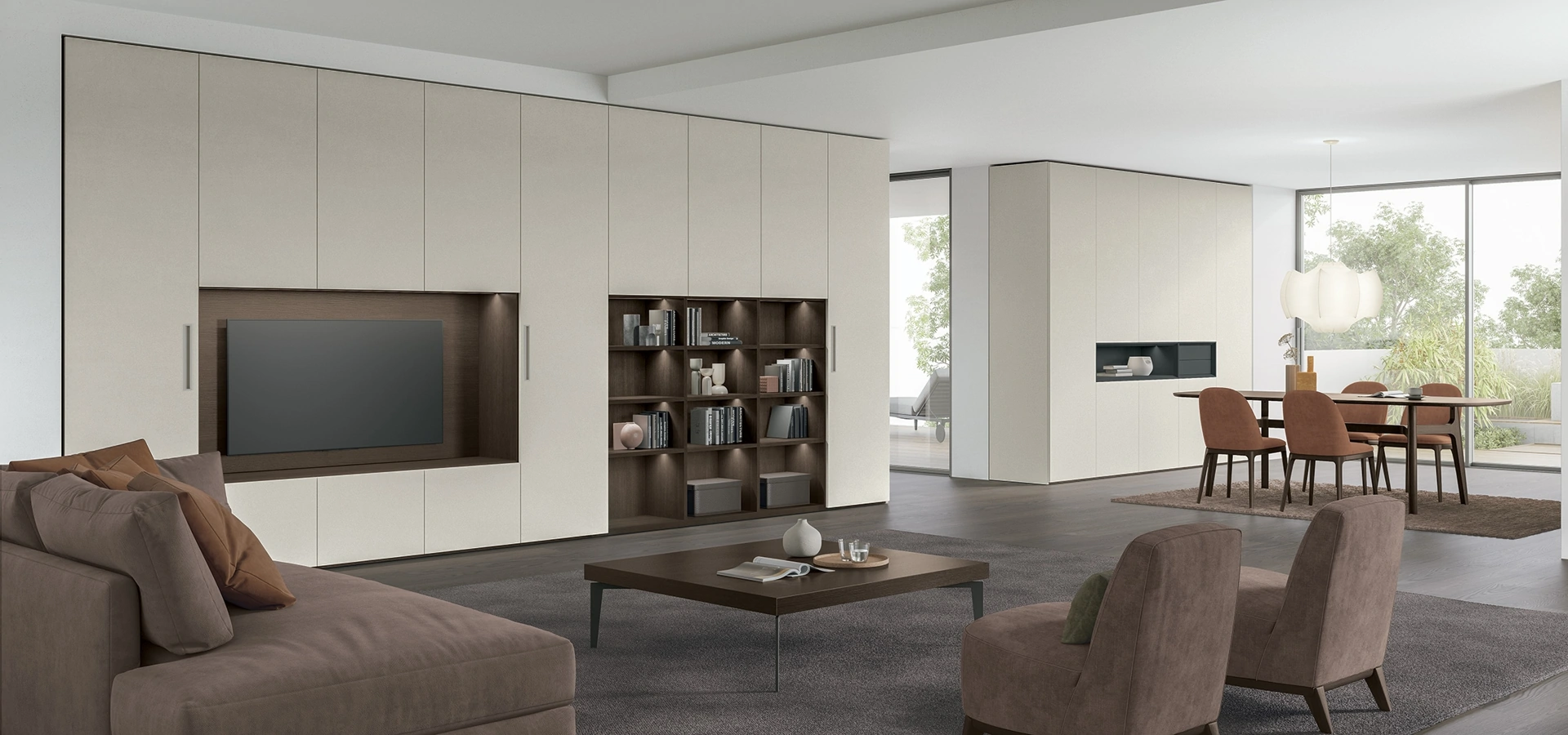 Clicca e scopri di più sulla parete attrezzata Logica Plus UNIT 01 dell'azienda Tomasella: è la soluzione dalle linee moderne perfetta per te.