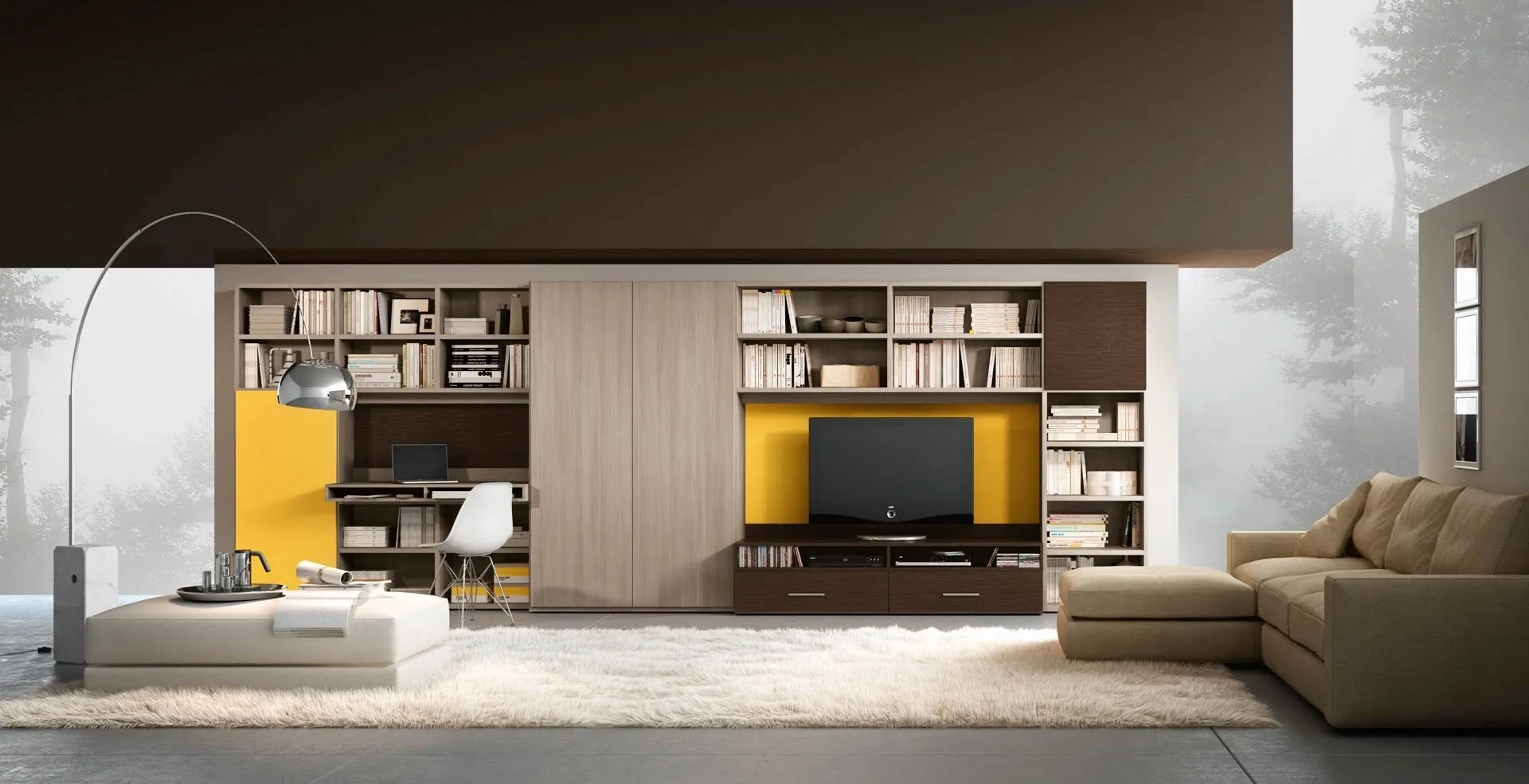 Pareti attrezzate e pensili Ferrimobili: clicca e scopri il modello Parete Attrezzata Living 73D e potrai arricchire stanze moderne di ogni genere.