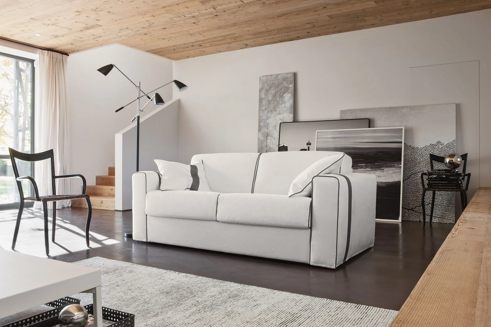 La serie di divani della firma in questione presenta svariate possibilità originali per impreziosire il living all'insegna di praticità, comfort e stile. Il catalogo Fabbri Salotti offre svariate possibilità per impreziosire gli interni all'insegna di praticità e estetica, mettendo al centro il tuo comfort. Divano Letto Elysium di Fabbri Salotti: ricrea uno spazio accogliente e confortevole in spazi moderni di gran classe. I nostri Salotti sono pensati per essere abbinati a accessori di ogni genere, come tavolini, abat jour e piantane o in combinazione con ulteriori divani in tessuto. Se desideri imbottiti con letto come il modello in foto, contraddistinto dai volumi che invitano a goderti i tuoi momenti di relax.