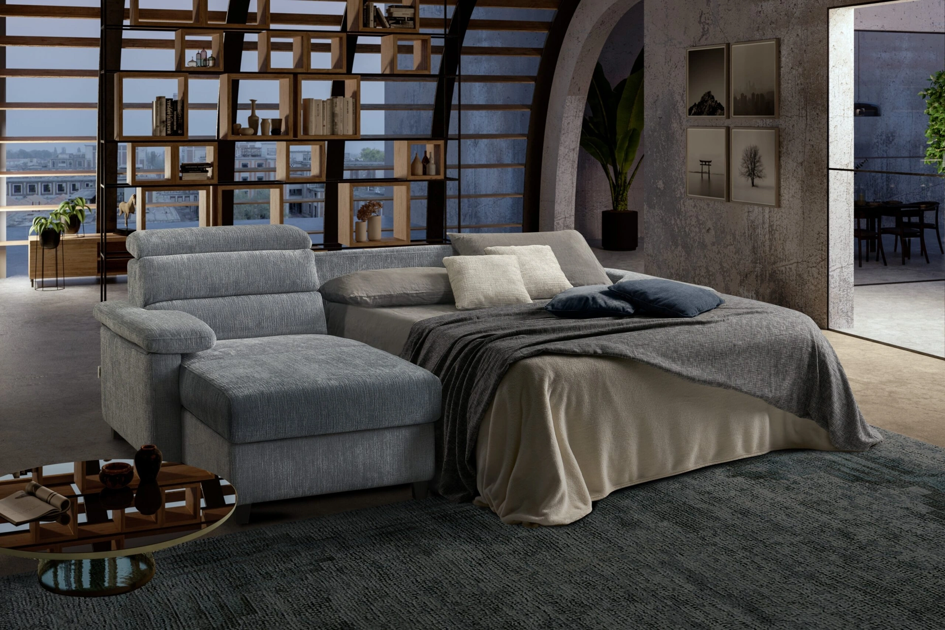 Salotti e divani con letto Il Benessere: ti presentiamo il modello Pablo in tessuto per arricchire il soggiorno.