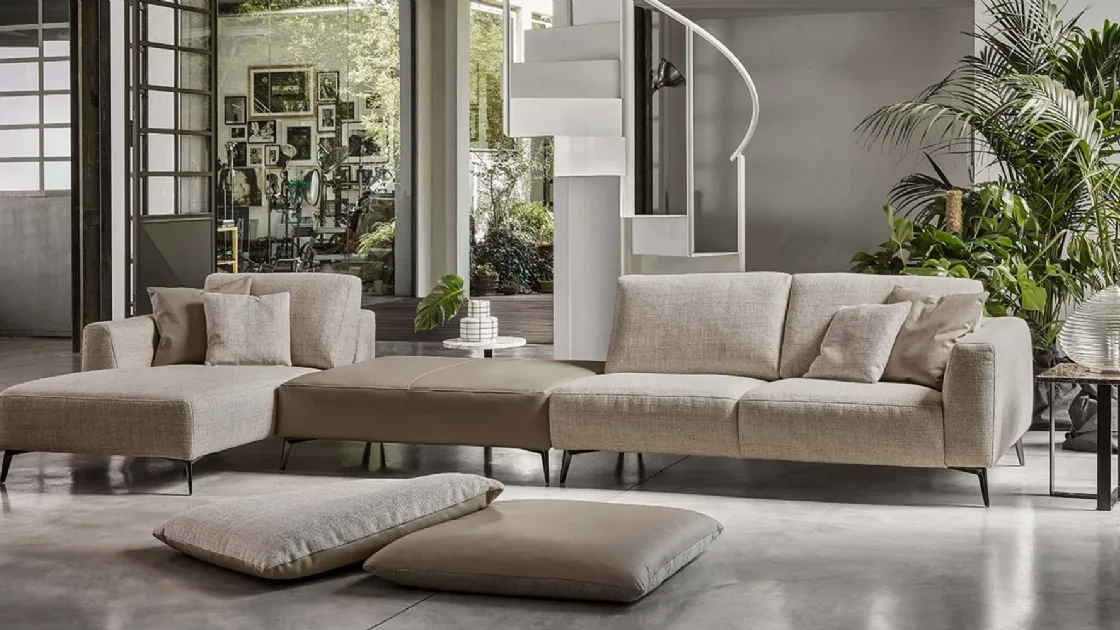 Salotti e divani con penisola Rosini: ti presentiamo il modello LIVERPOOL in tessuto per valorizzare la zona giorno.