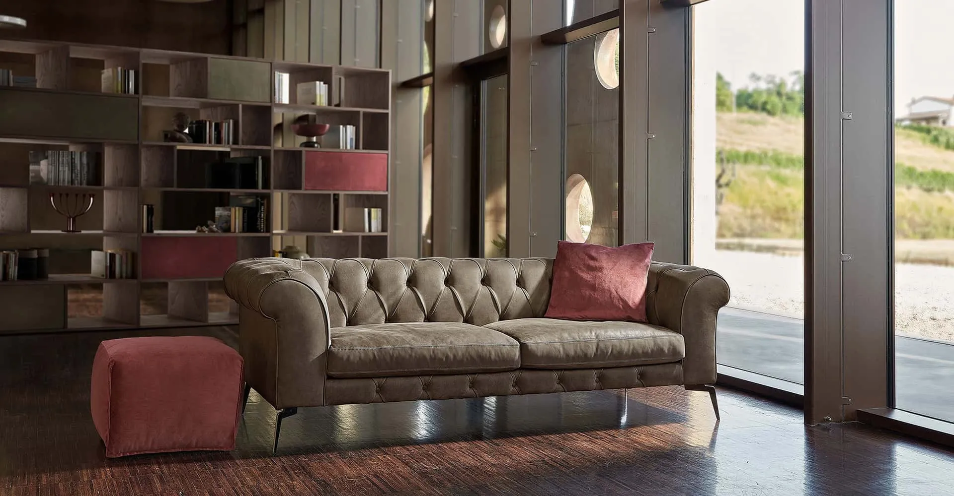 Cerchi salotti e divani Rosini in pelle? Clicca e ottieni informazioni sul modello NAVONA per spazi classici.
