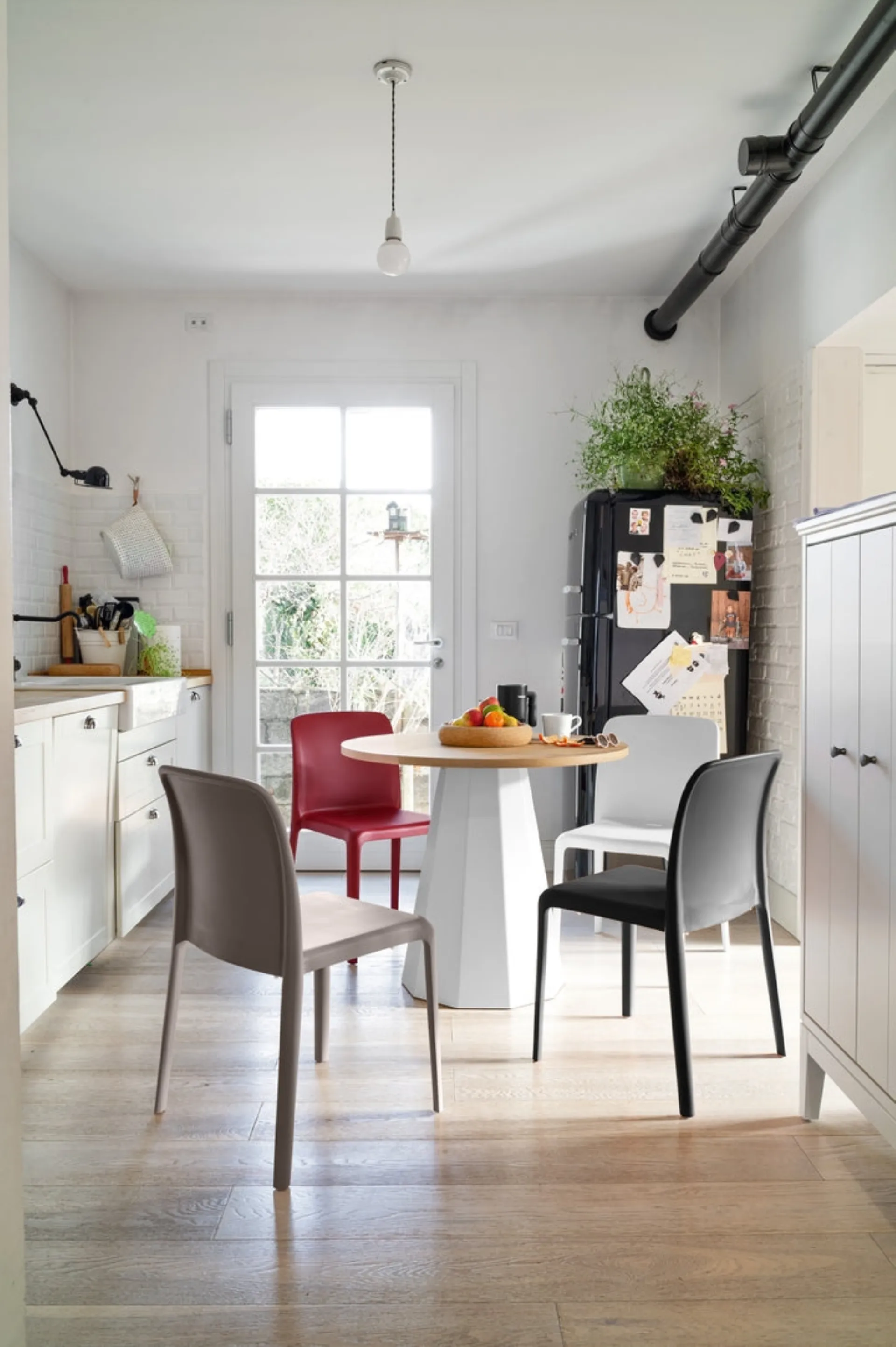 Se vuoi una sedia in plastica per impreziosire l’atmosfera di casa, scopri di più sul modello nell'immagine e trova un tavolo in abbinamento. Sedia impilabile in polipropilene Bayo di Connubia: questo modello andrà ad impreziosire spazi di ogni genere, specialmente ambientazioni moderne. Un'ampia gamma di sedute impilabili da cucina ti sta aspettando in negozio: contattaci per info e preventivi e ottimizza i tuoi spazi con l'eccellenza che solo Connubia sa assicurarti per mobili ed elementi accessori. Nel living o nella cucina, le Sedie sono arredamenti essenziali: sottolineano lo stile del locale e assolvono a un ruolo imprescindibile. Il living e la cucina non sono davvero accoglienti e confortevoli se arredati con le Sedie sbagliate, ecco perché devono essere abbinate al resto degli arredi e alle dimensioni della stanza.