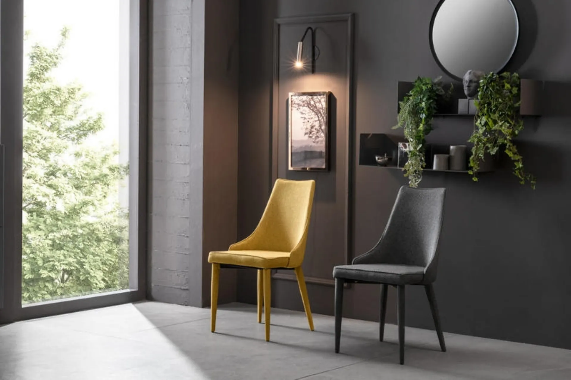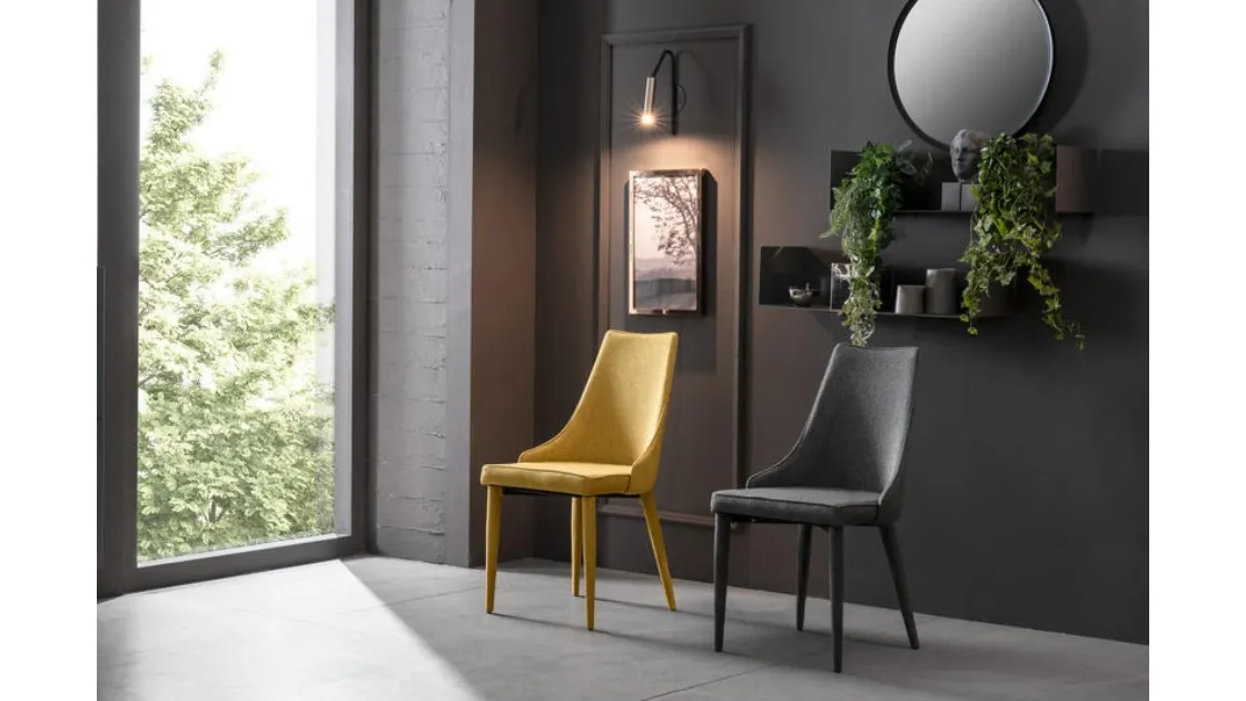 Con questa sedia Myriam Stones in tessuto, una delle nostre sedute fisse moderne, potrai impreziosire i tuoi spazi.