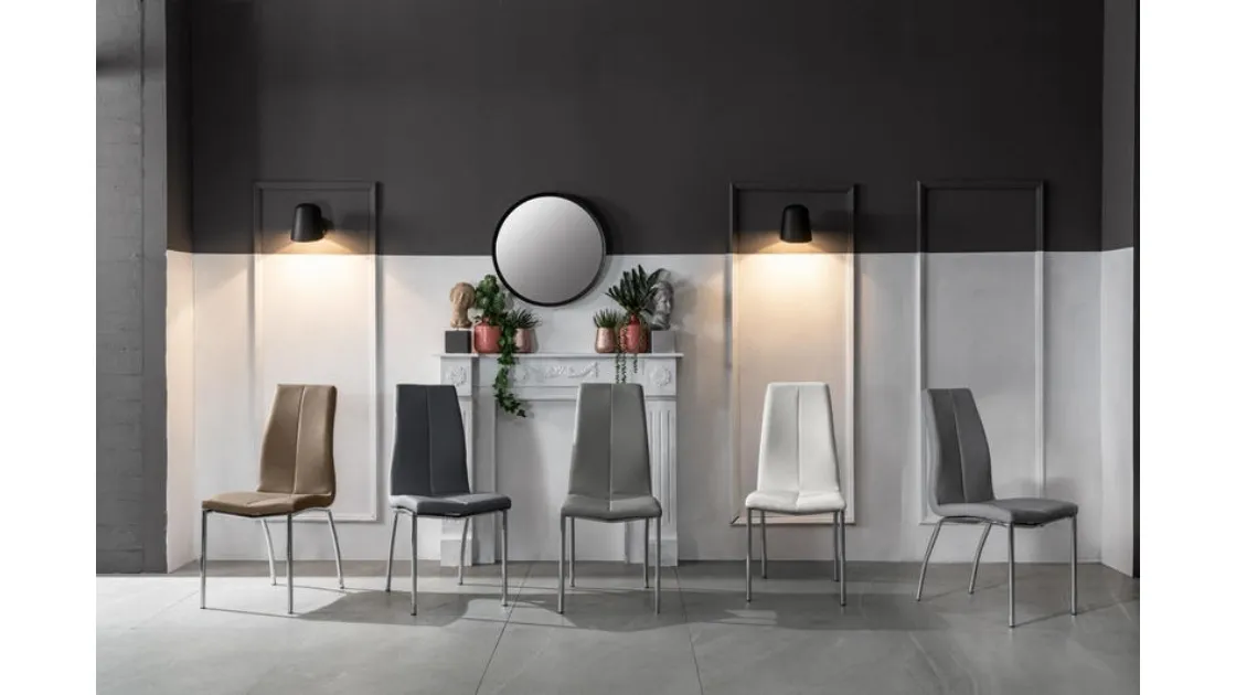 Cerchi una sedia da pranzo in ecopelle? Clicca e scopri il modello Viva di Stones per completare i tuoi interni ottimamente.