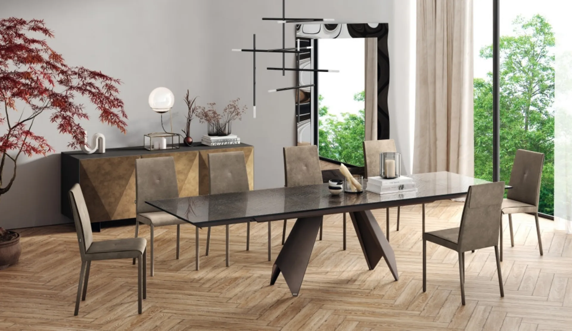 Se desideri tavoli allungabili design, ti offriamo il modello da pranzo in gres Luxor del marchio Scavolini.
