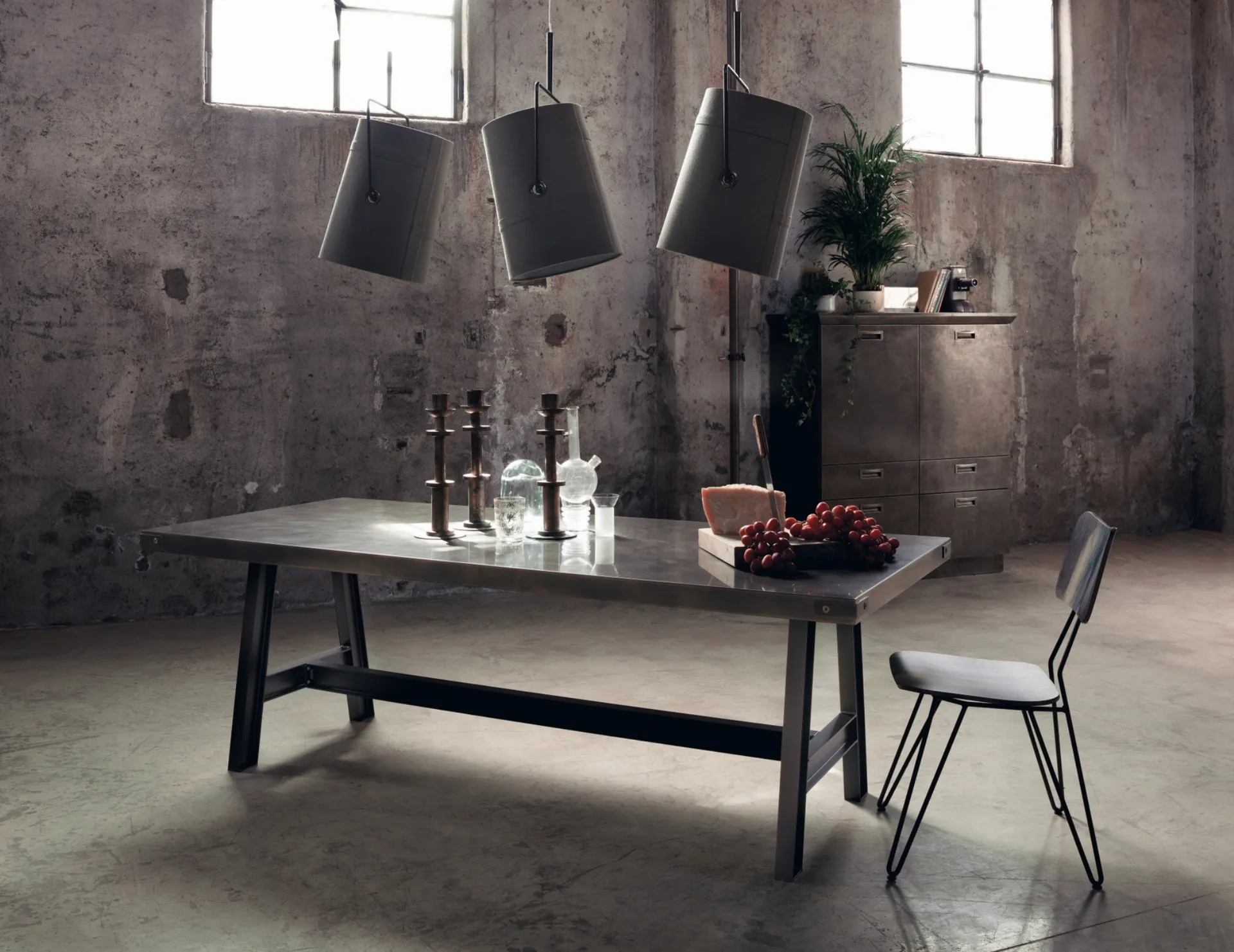 Nel nostro sito dedicato all'Arredamento Casa troverai tutto ciò di cui necessiti per il soggiorno o la cucina. In showroom ti aspetta un ricco catalogo di Tavoli fissi dei migliori produttori, tra cui anche il modello da pranzo visibile in foto. Scegli i mobili e oggetti accessori in metallo dei migliori produttori per completare con funzionalità i tuoi interni senza mai trascurare il valore estetico. Se vuoi cambiare gli arredi moderni che hai in casa o acquistarli per la prima volta, da noi potrai vedere dal vivo le soluzioni più belle sul mercato. Durante la scelta del tavolo perfetto per te Bisogna valutare dimensioni, linee, materiali e stile, per ottimizzare lo spazio con un ottimo effetto estetico.
