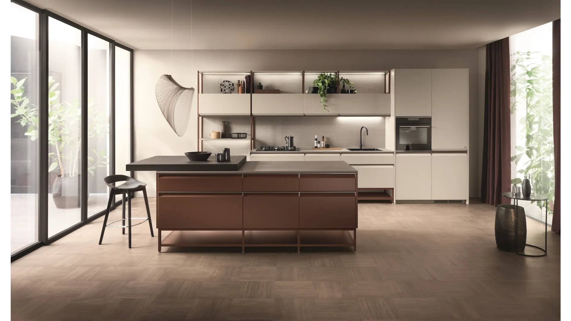 Il catalogo delle cucine Scavolini offre un’ampia gamma di finiture e di materiali, dai più tradizionali come legni, laccati e vetri, alle malte e resine fino ai materiali più tecnici e performanti.