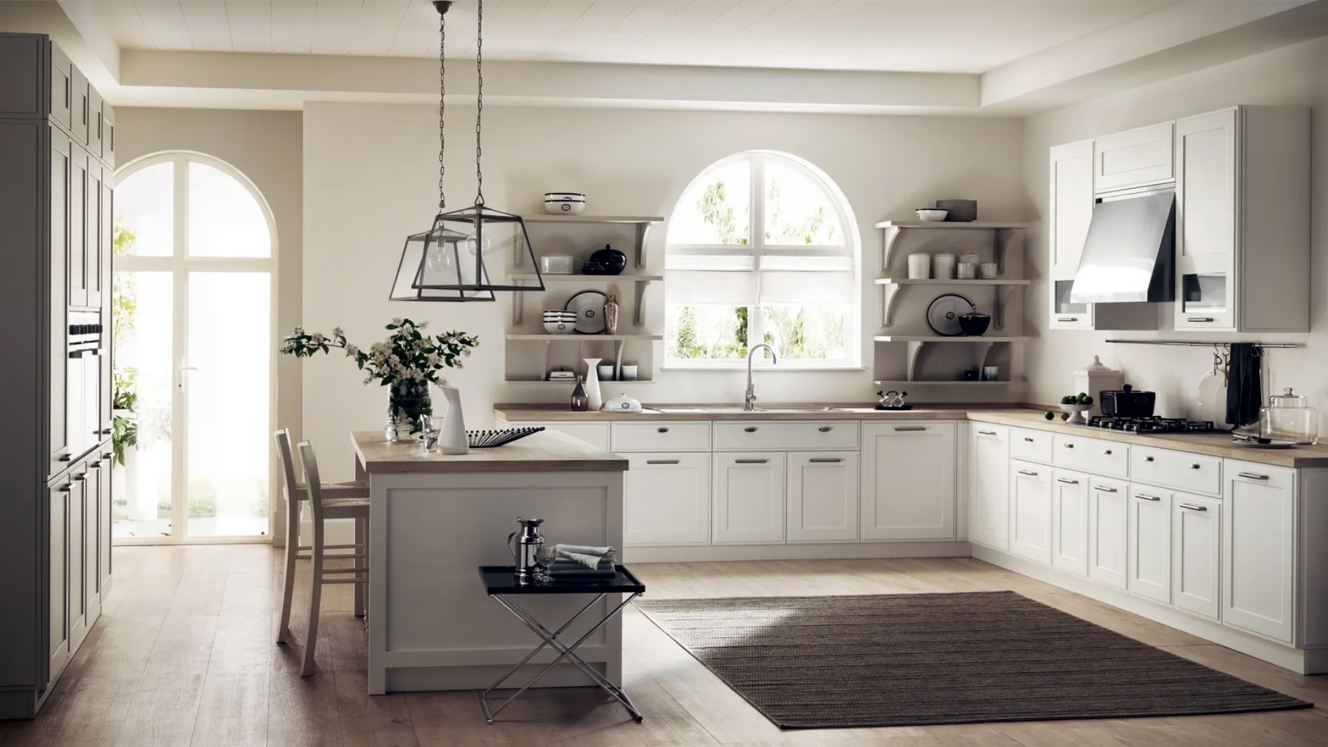 Vuoi riammodernare la vecchia cucina? Clicca e scopri una ricca gamma di soluzioni tradizionali ad angolo: Favilla 05 Bianco Prestige ti sta aspettando!