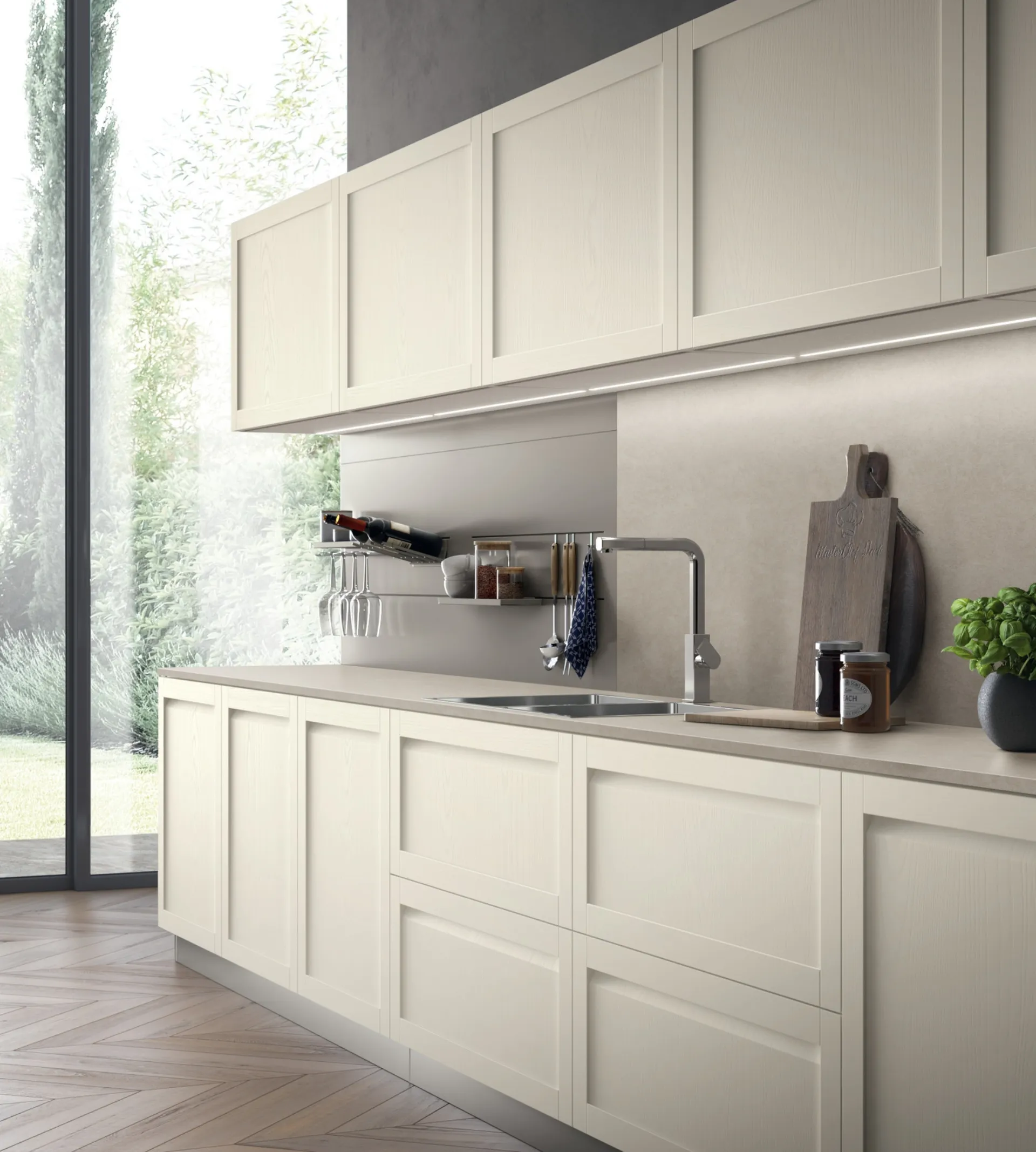 Clicca e scopri un universo di Cucine Moderne in linea: la cucina Carattere Frassino Cotone Scavolini in legno ti aspetta!