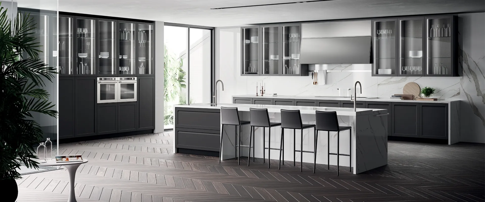 Ottieni informazioni sulla cucina Carattere Grigio Ferro di Scavolini: questa soluzione in laccato opaco sarà l'acquisto ideale per te!