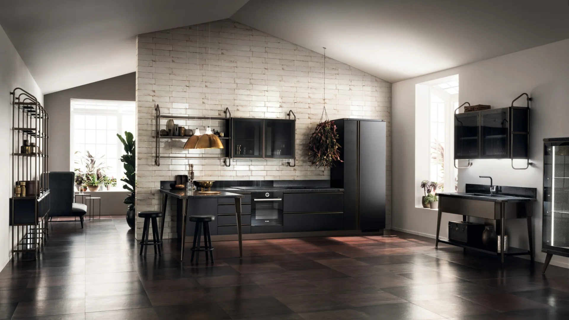 Se cerchi una cucina moderna, scopri di più sul modello Diesel Open Workshop con Top in Corial Gravel Scavolini.