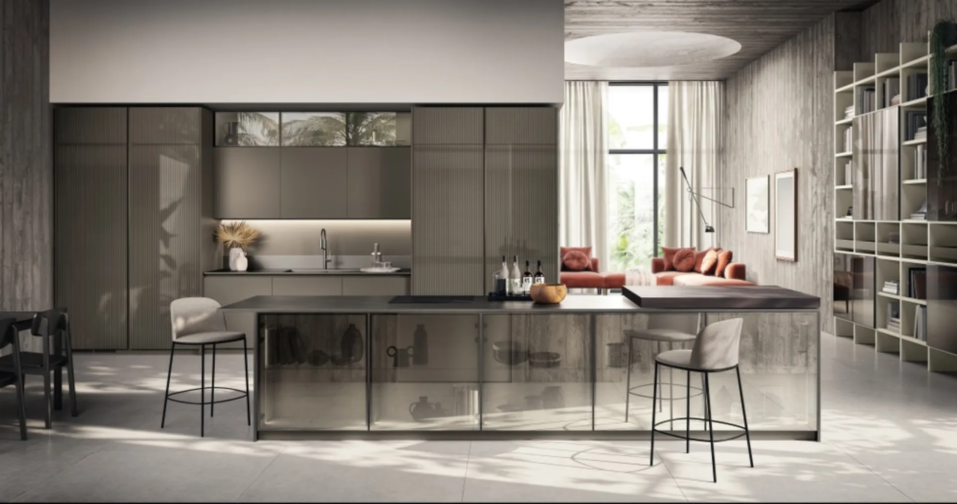 Clicca e scopri un universo di Cucine Moderne con isola: la cucina Libra Perlato Cuvee Scavolini in laccato lucido ti aspetta!