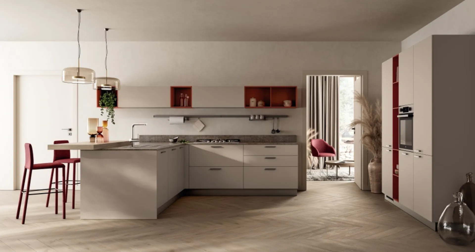 Clicca e scopri un universo di Cucine Moderne con penisola: la cucina Moda 07 Scavolini in melaminico ti attende!