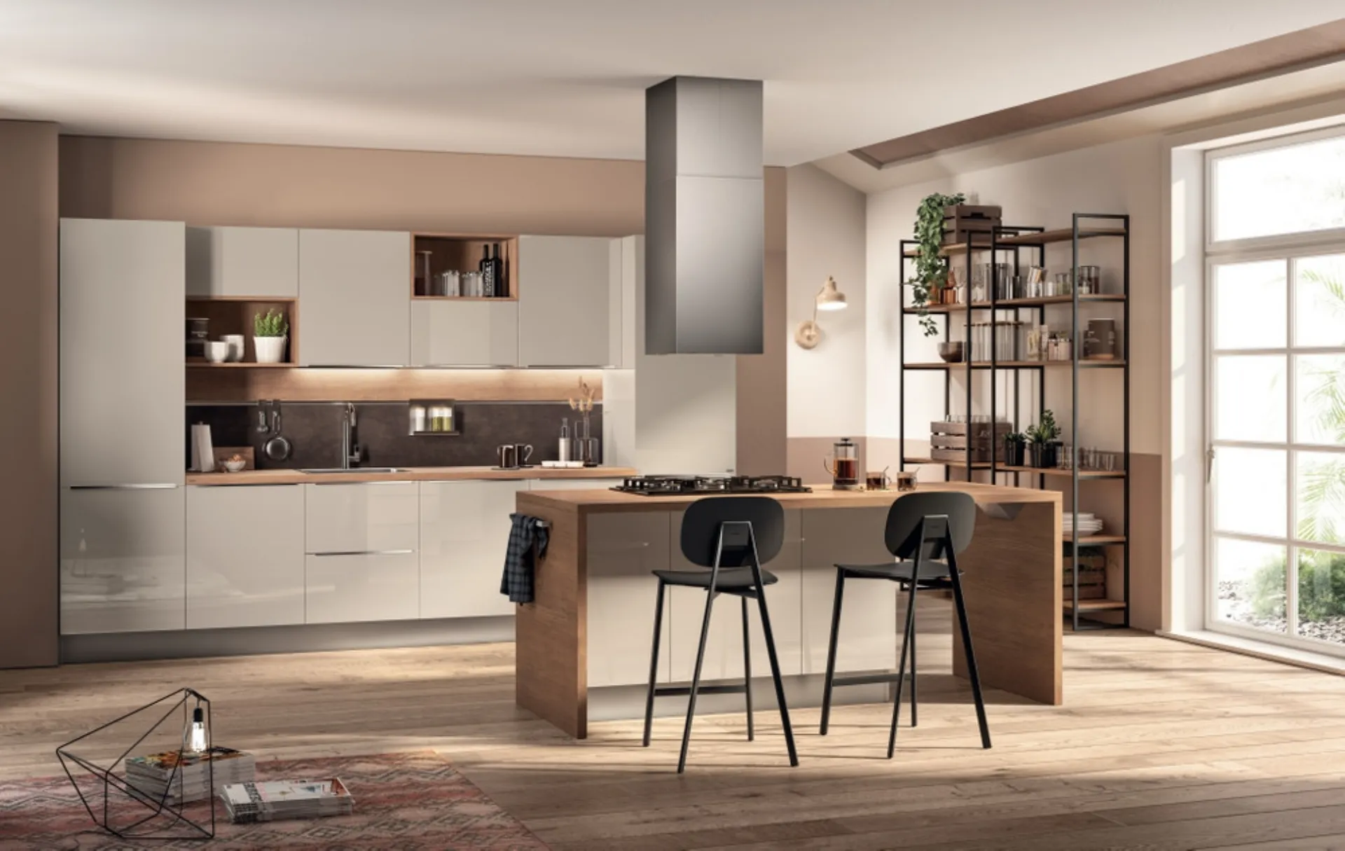 Se sei alla ricerca di una cucina moderna, ottieni informazioni sul modello Urban & Urban Minimal in laccato lucido Sabbia Scavolini.