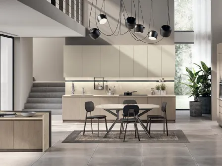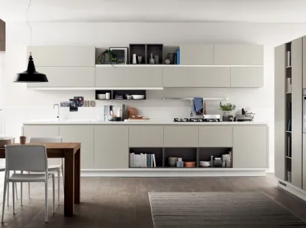 Cerchi cucine realizzabili su misura per te? Scopri di più sul modello Formalia in Grigio Chiaro e Noce Garden in melaminico dell'azienda Scavolini!
