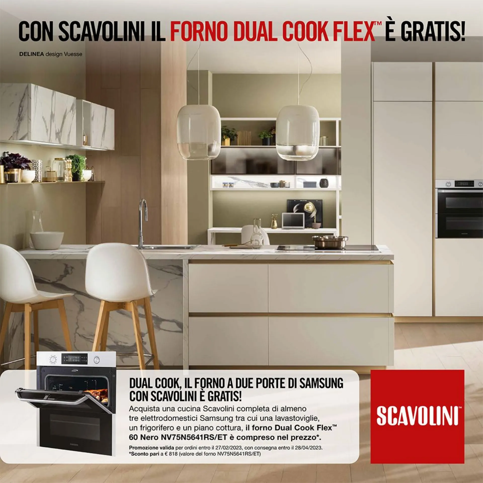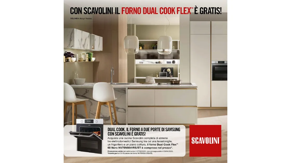 Acquistando una cucina Scavolini completa di elettrodomestici Samsung, in omaggio il forno Dual Cook